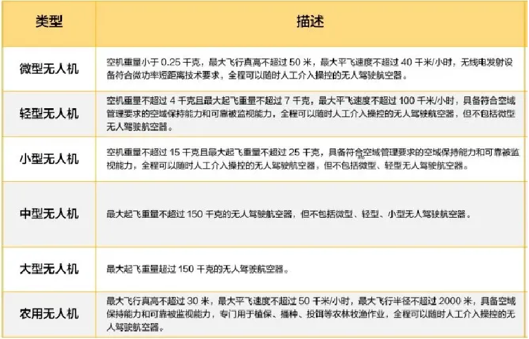 (五)中型無(wú)人駕駛航空器,是指最大起飛重量不超過(guò)150千克的無(wú)人駕駛航空器,但不包括微型、輕型、小型無(wú)人駕駛航空器。